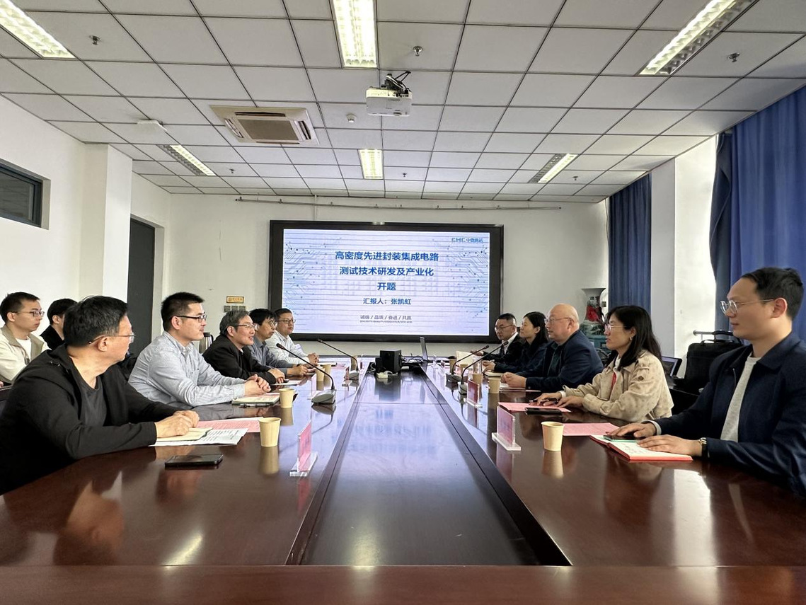4月11日下午,云顶国际娱乐场 与无锡中微腾芯电子有限公司举行江苏省科技成果转化项目《高密度先进封装集成电路测试技术研发及产业化》的开题会议。中国电科首席科学家于宗光特邀参加会议。