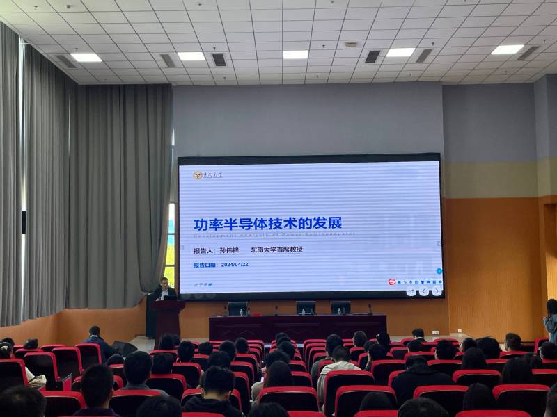 4月22日上午,东南大学云顶国际娱乐场 云顶国际乐场 ,国家高层次人才,东南大学首席教授,博士生导师,孙伟锋教授应邀为云顶国际娱乐场 “芯耀江海微电讲坛”作学术报告,报告的题目是《功率半导体技术发展》。