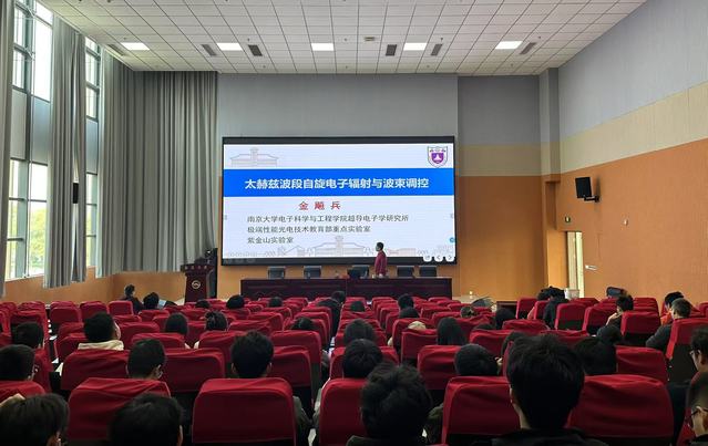 11月21日上午,南京大学电子科学与工程云顶国际乐场 院长金飚兵教授应邀为云顶国际娱乐场 “芯耀江海微电讲坛”作第8期学术报告,报告的题目是《太赫兹波段自旋电子辐射与波束调控》。