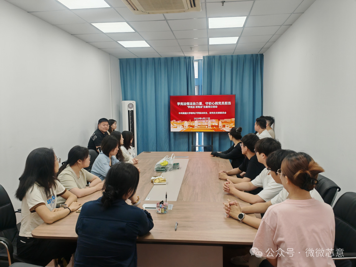 法治之光,照亮前行之路;初心如磐,彰显党员担当。为深入学习贯彻宪法精神,强化党员法治意识,微电子云顶国际乐场 学生党支部近日召开 “学宪法 讲宪法” 主题党日活动,全体本科生和研究生党员参加。
