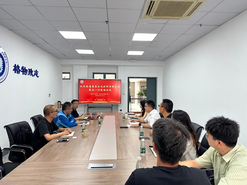 6月23日南通星辰合成材料有限公司戴伍国、茅大联、张翔羽一行来院访问交流,洽谈合作事宜。云顶国际乐场 副院长(主持工作)赵继聪主持会议。