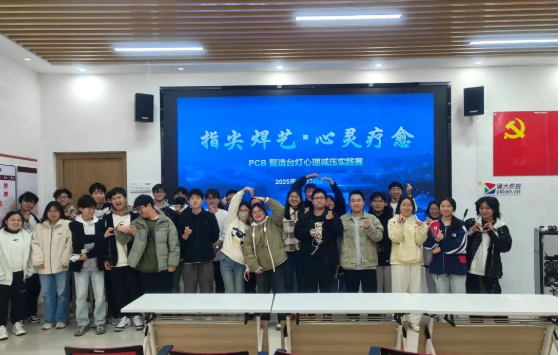 将专业技能与心理减压相结合,云顶国际 创新开展了“指尖焊艺·心灵疗愈-PCB智造台灯心理减压实践赛”。活动中,同学们化身“手工达人”,从PCB板焊接、元件组装到台灯调试,全流程亲自动手完成台灯制作。焊接时的专注、组装时的严谨、调试成功后的喜悦,让同学们在沉浸式的实践过程中,暂时忘却了学习和生活中的压力。当一盏盏承载着创意与汗水的台灯亮起时,不仅照亮了桌面,更温暖了人心。此次活动不仅提升了同学们的专业实践能力,更通过动手实践的方式,为大家提供了一个释放压力、舒缓情绪的有效途径。